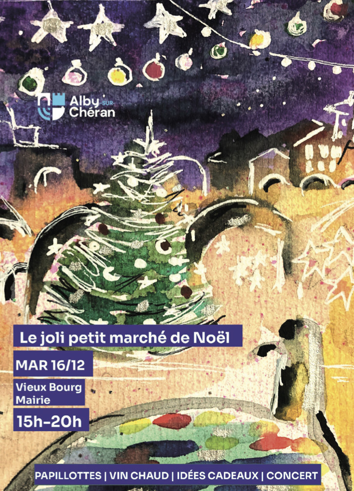 Le mardi 16 décembre, de 15 h à 20 h, le Vieux Bourg et la mairie d’Alby-sur-Chéran accueilleront une édition spéciale du marché hebdomadaire. Le traditionnel rendez-vous se transformera, le temps d’une soirée, en un « Joli petit marché de Noël » mêlant ambiance festive, artisanat local et animations familiales.