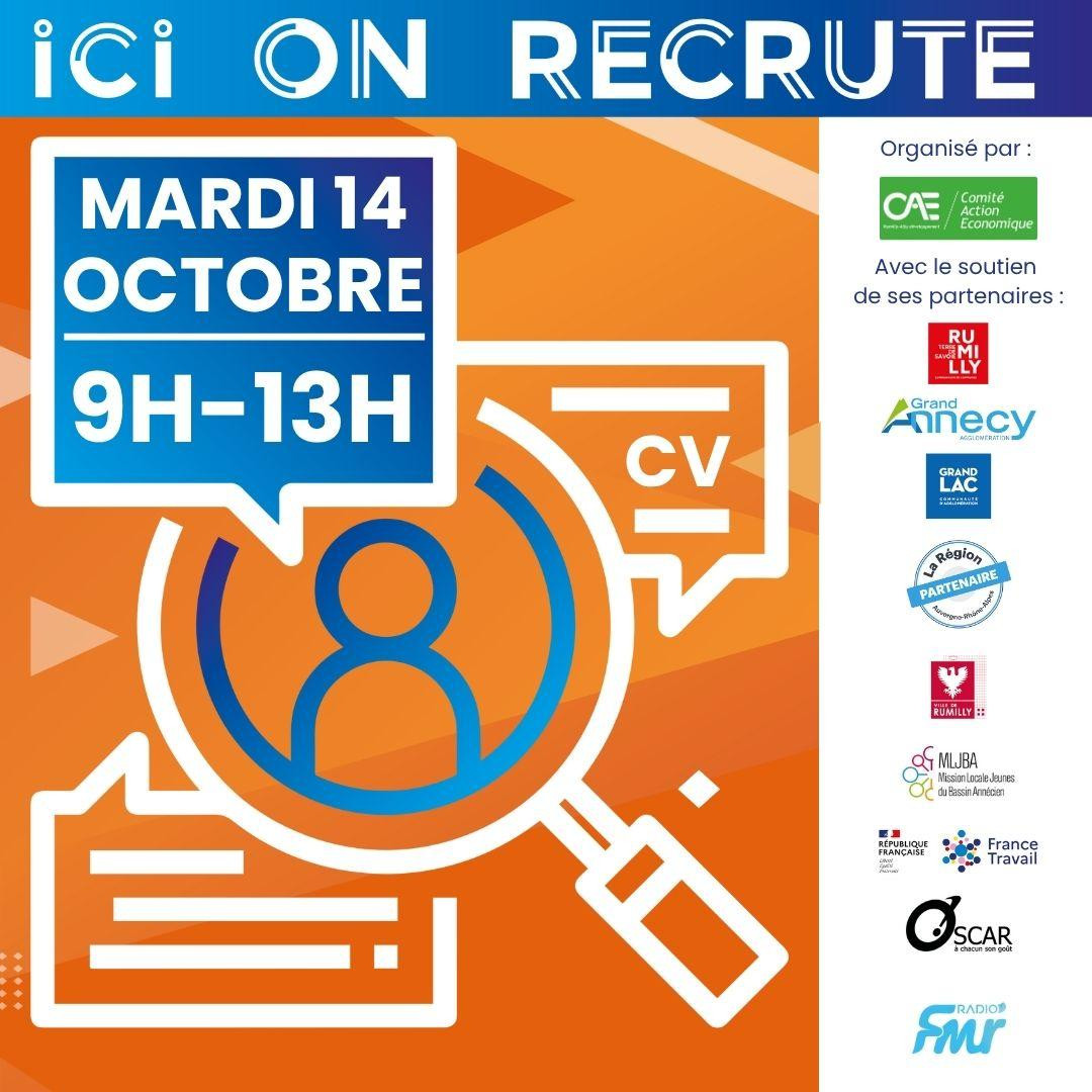 Le CAE (Comité d’Action Économique) « Rumilly – Alby Développement » organise, en partenariat avec la Ville de Rumilly et les intercommunalités, la nouvelle édition du salon « Ici on recrute ! ».