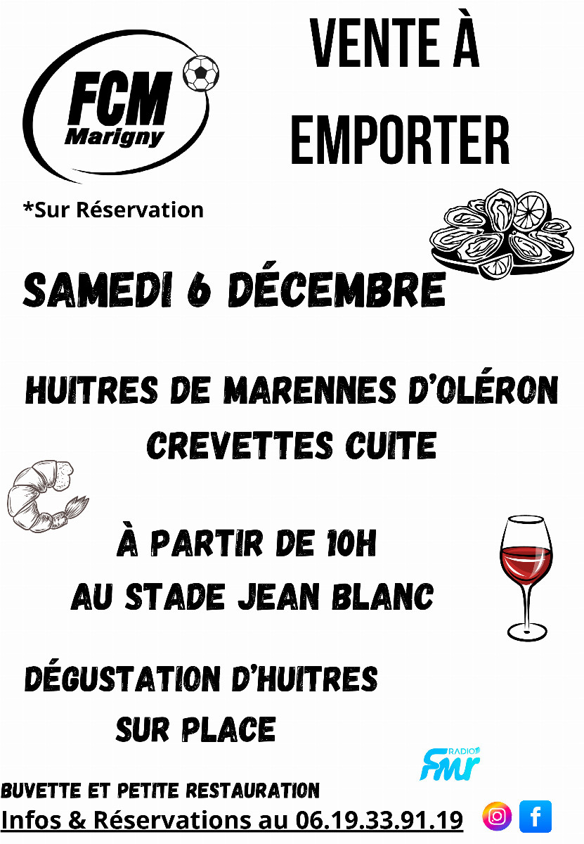 Le FC Marigny Saint-Marcel organise un événement culinaire convivial le samedi 6 décembre, ouvert à tous les amateurs de produits de la mer comme aux habitants du secteur à partir de 10h. Une journée placée sous le signe de la gourmandise et du partage, avec au programme : vente à emporter et dégustation sur place.