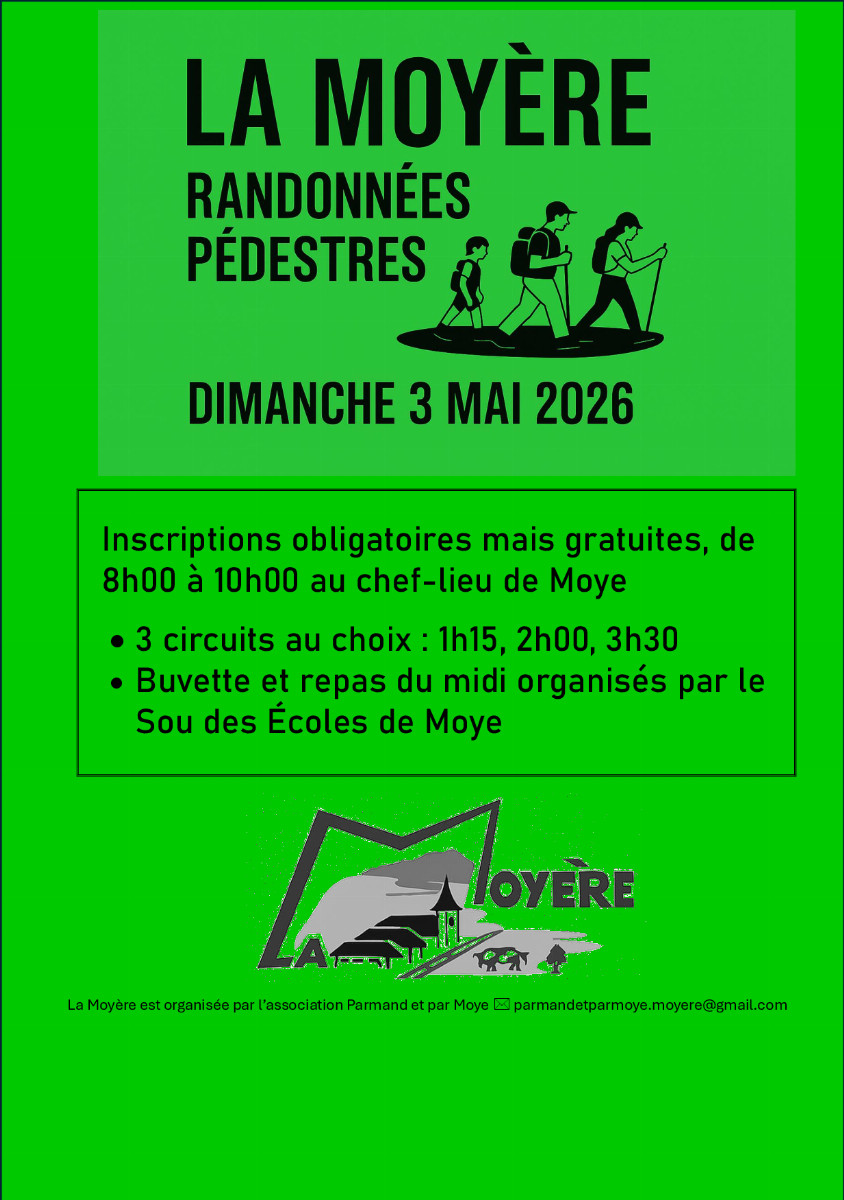 Rendez vous ce dimancche 3 mai, venez participer à La Moyère, une manifestation conviviale autour de la marche, accessible à tous les niveaux.