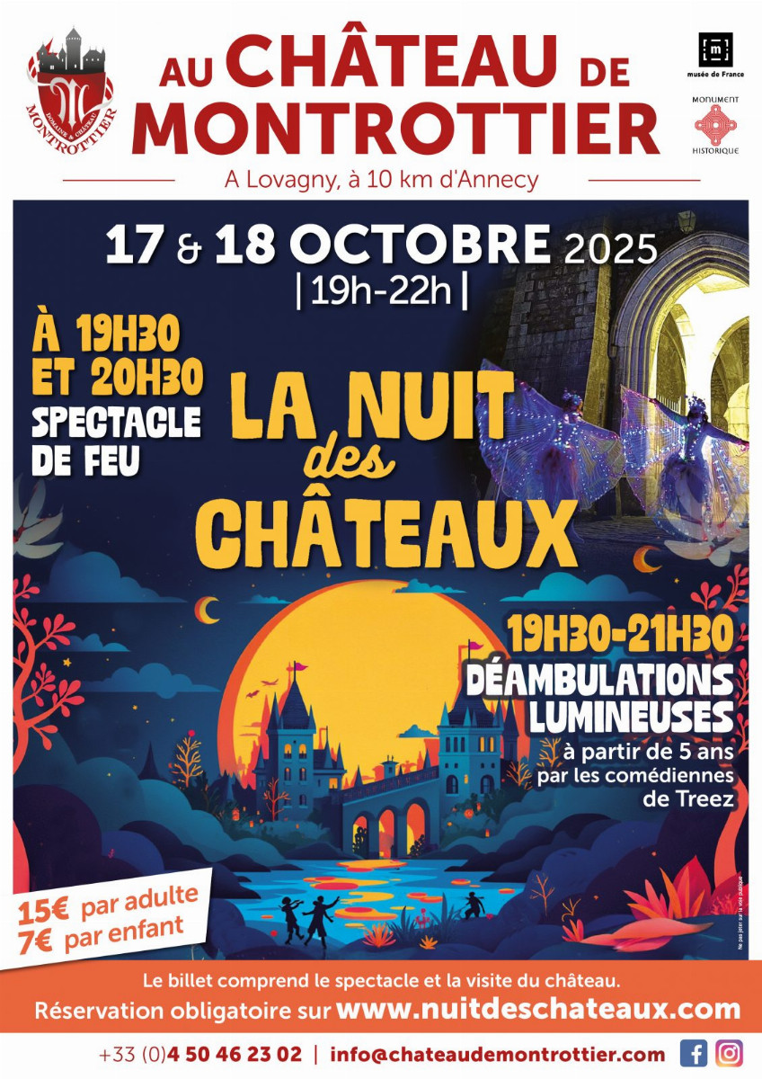 Le Château de Montrottier à Lovagny organise La Nuit des Châteaux les 17 et 18 octobre 2025, de 19h à 22h.