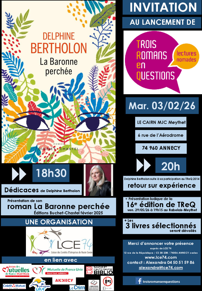 L’association LCE 74 organise le lancement de son jeu littéraire Trois Romans en Questions (TReQ) le mardi 3 février 2026 au CAIRN – MJC de Meythet, à partir de 18h30.