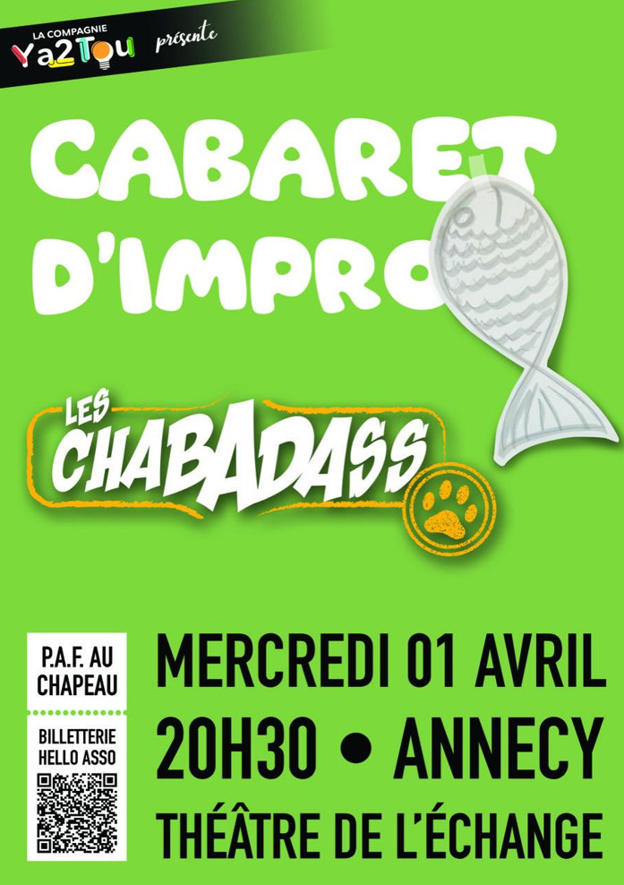 La troupe d’improvisation Les Chabadass vous donne rendez-vous le mercredi 1er avril à 20h30 au Théâtre de l’Échange à Annecy pour une soirée placée sous le signe de l’humour, de la créativité et de la folie.