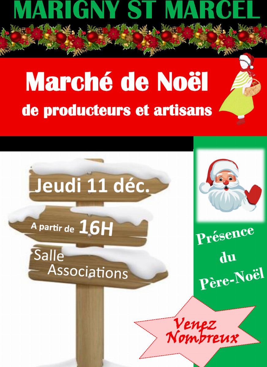 La magie des fêtes s’invite à Marigny-Saint-Marcel avec le traditionnel Marché de Noël des producteurs et artisans, qui se tiendra jeudi 11 décembre à la salle des associations.