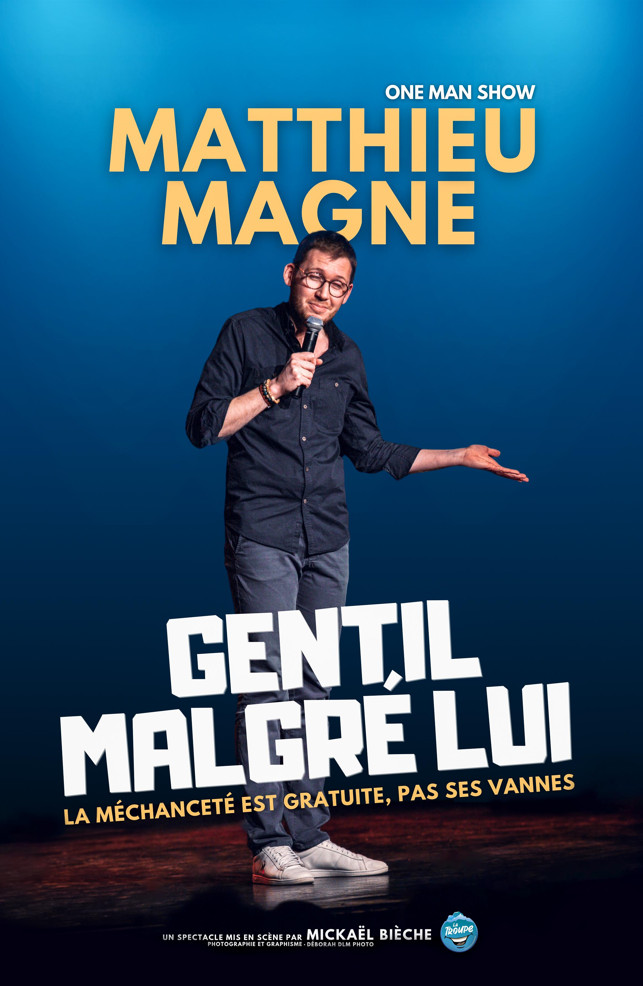 Avec Gentil malgré lui, Matthieu Magne propose un humour accessible, moderne et actuel, qui parle à toutes les générations. Un one man show qui fait du bien, sans jamais tomber dans la morale, et qui pourrait bien donner envie au public… d’être un peu plus gentil en sortant de la salle.