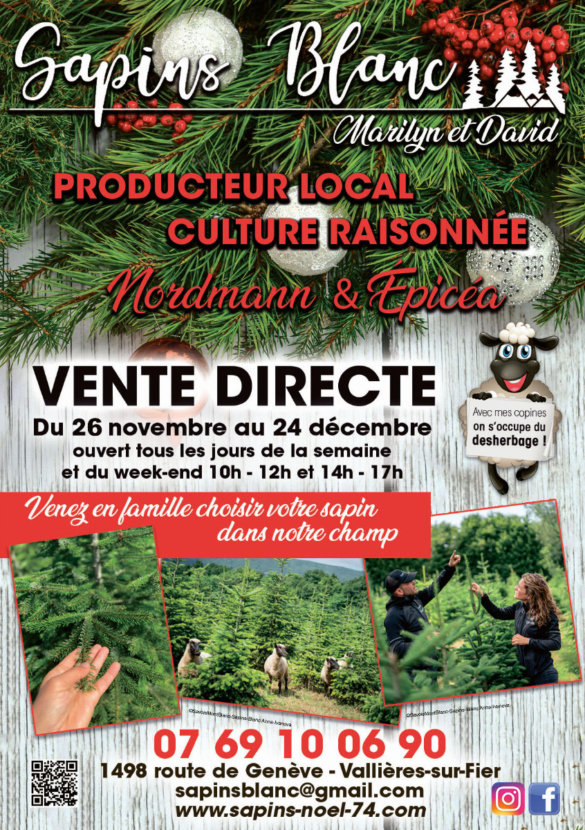 Marilyn et David vous accueillent à Sapins Blanc à Vallières-sur-Fier pour une vente directe de sapins Nordmann et Épicéa.