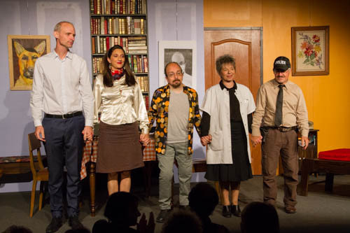 Cette comédie absurde de Sébastien Thiéry, mise en scène par Michel Pierre et Christian Mouniguet, est interprétée par la troupe Les Gars de la Rampe, qui la joue depuis 2022.