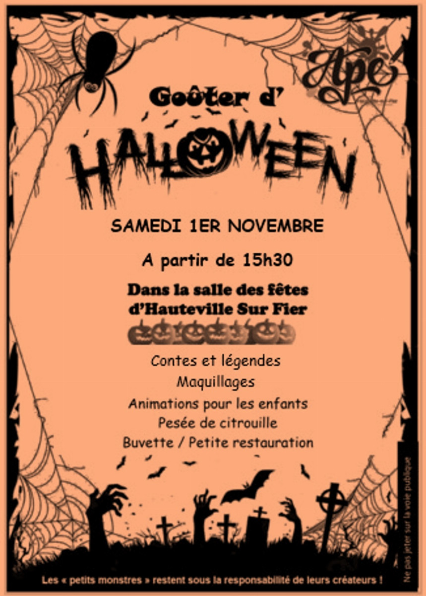 L’Association des Parents d’Élèves de Hauteville-sur-Fier vous invite à sa grande fête d’Halloween le vendredi 1er novembre, à partir de 15h30, à la salle des fêtes de Hauteville-sur-Fier !