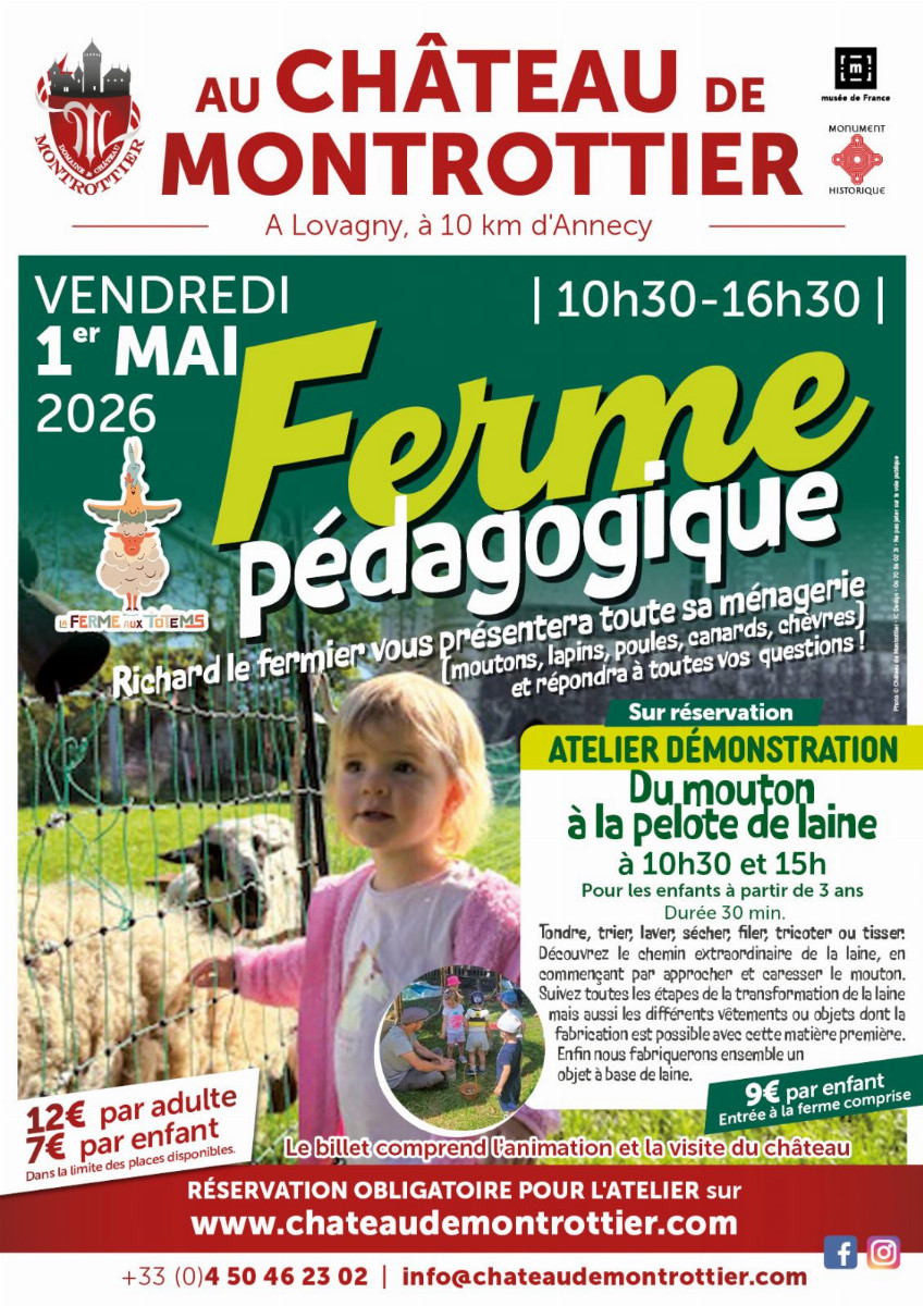 Le Domaine et Château de Montrottier propose une journée immersive autour du monde agricole le vendredi 1er mai, avec une ferme pédagogique et un atelier démonstration spécialement pensés pour les enfants.