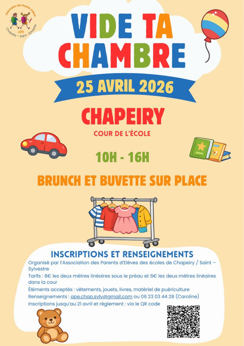 L’APE de Chapeiry / Saint-Sylvestre organise un “Vide ta chambre” le 25 avril, de 10h à 16h.